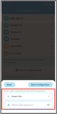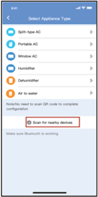 Se la configurazione della rete bluetooth è fallita, si prega di selezionare il tipo di apparecchio.