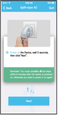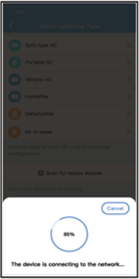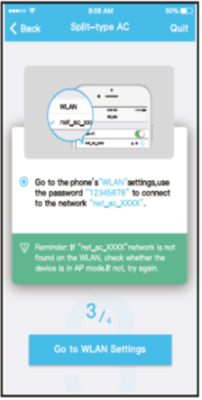 - Se non viene impostata nessuna operazione sotto l’impostazione Wi-Fi, il condizionatore d’aria uscirà automaticamente dopo 8 minuti, e tornerà a funzionare normalmente.