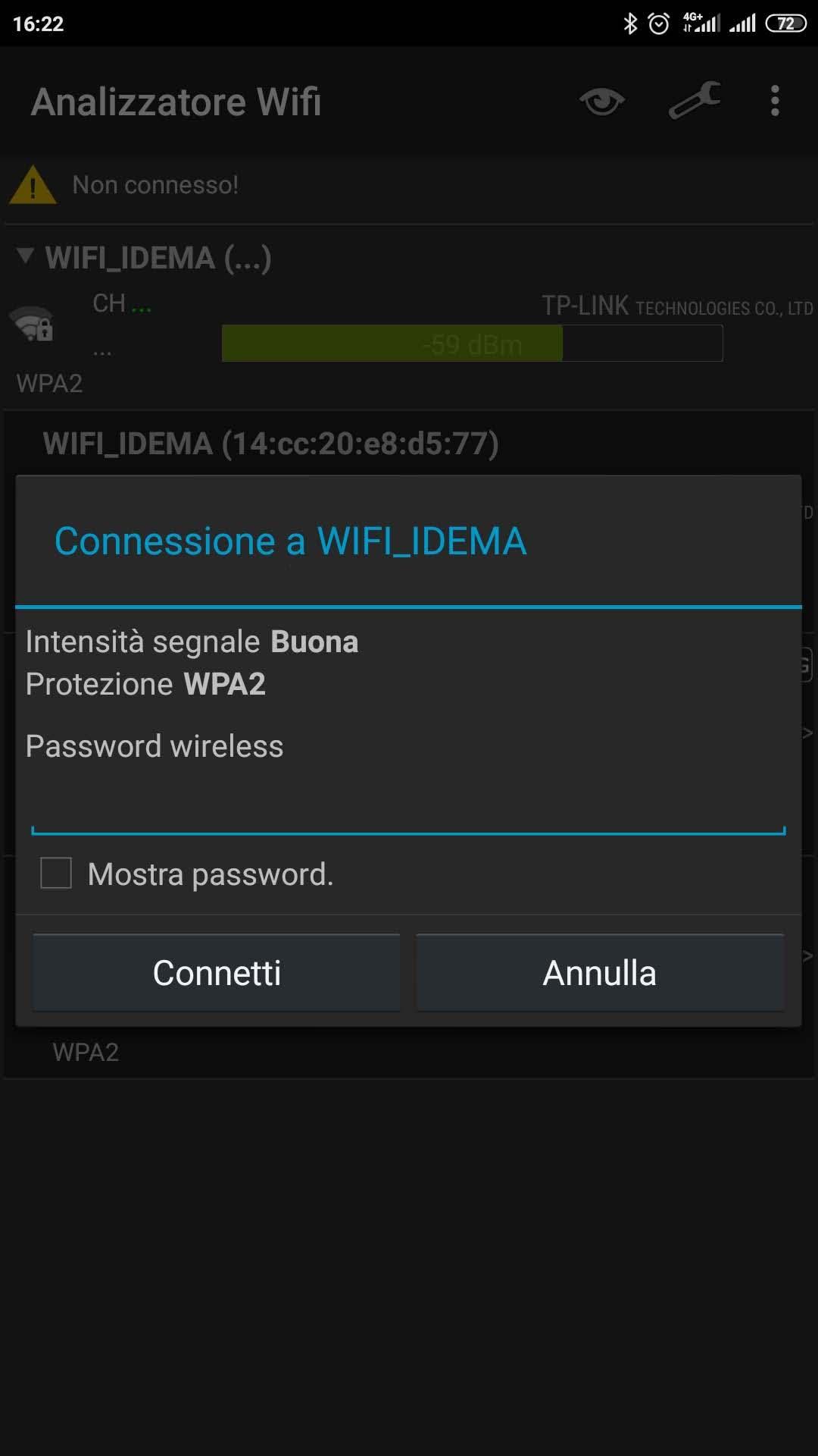 Selezionare la rete Wi-Fi, inserire la password della rete Wi-Fi.